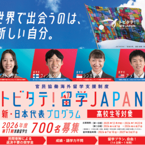 「トビタテ!留学JAPAN」は、文部科学省が中心となり、企業からの支援も受けている給付型奨学金制度で、高校生自身が考えたユニークな「探究活動」を応援してくれるプログラムです。