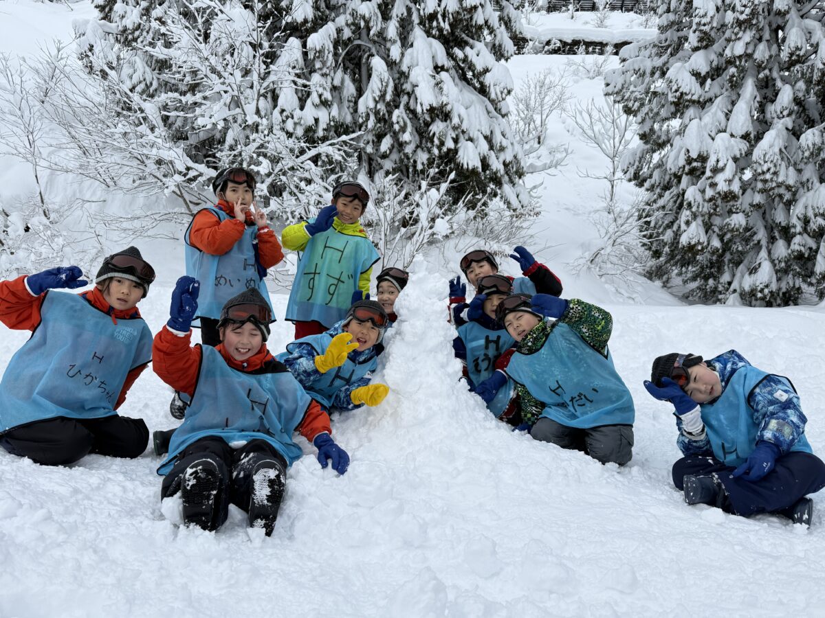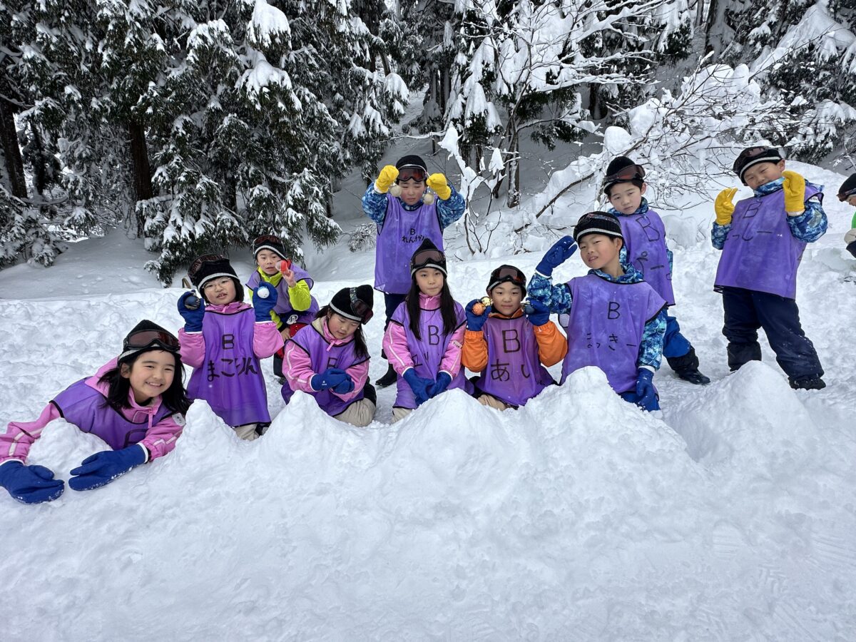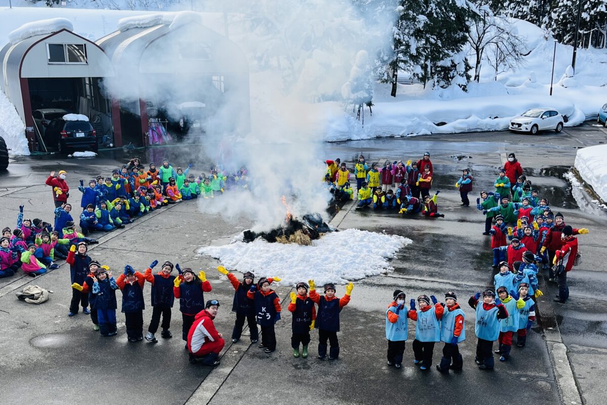 2日目は、時折晴れ間も見られる穏やかな天気で、午前は、自分たちで考えたオリジナルの雪遊び、午後は、自分たちで疑問出しから行った雪の探究活動を行いました。雪遊びは、想像していた雪上と実際の雪のコンディションや状況の違いを把握して、臨機応変に遊びのルールを変えたり、工夫したりしながらの充実した雪遊びの活動となりました。雪の探究は、雪の温度、重さ、形などに注目した探究テーマが多く、子どもたちは、一生懸命、計画してきた観察、実験を繰り返していました。また、この日の夕方は、「賽の神(さいのかみ)」体験を行いました。賽の神とは、小正月に正月飾りや書き初めを持ち寄り、燃やして家内安全・五穀豊穣などを願う新潟の伝統行事(どんど焼き・左義長)で、特に魚沼市では魚沼産コシヒカリの稲わらを使うのが特徴です。地域の各所で小正月(1月中旬頃)に開催されます。開智小の2年生たちは、みんなで燃える炎を囲みながら、様々な願いや思いを込めながらの素敵な時間となりました。