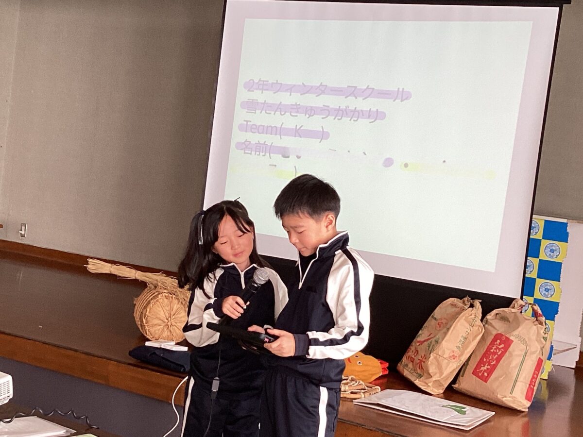 これまで事前に準備してきたこと、現地で一次情報を得てまとめた探究内容を発信する日です。子どもたちは、普段から活用しているタブレットをフル活用して、プレゼン資料を作成して、本番に臨みました。ペアやグループで協力しながらの探究、そして、プレゼンテーションは、1年生の頃よりも格段にレベルが上がっており、大きな成長が見られました。これからの探究活動を通じての、更なる成長が楽しみな2泊3日のウィンタースクールとなりました。