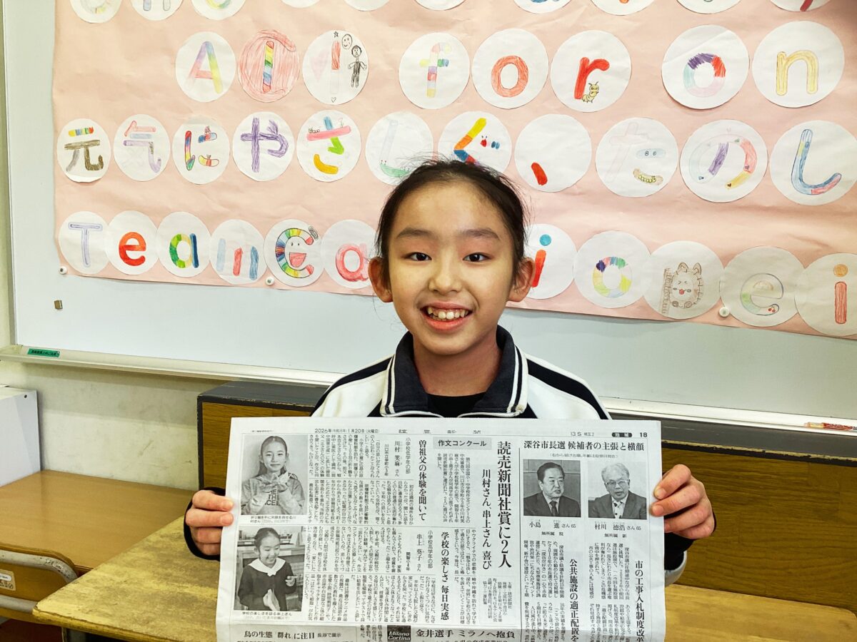 本校在籍小学校4年生の串上葵子さんが、「第75回全国小・中学校作文コンクール(読売新聞社主催/文部科学省他後援)」において「読売新聞社賞」を受賞しました。また、本日1月20日(火)の読売新聞の朝刊(地域面)で受賞の記事も掲載されました。